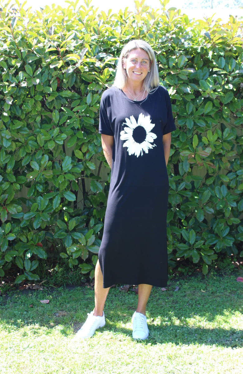 Fun abstract white sunflower screen print adds some design flair & alleviates the need to wear a necklace - easy as!